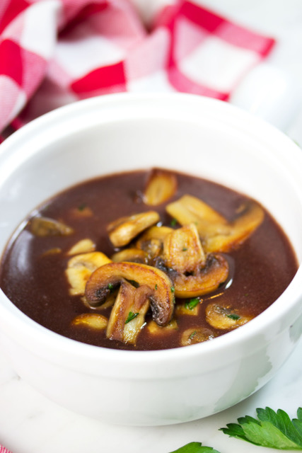 This is a delicious gluten free mushroom gravy. You’ll want to pour it on beef, chicken, potatoes, etc. The wine makes it a winner, and your family won’t believe it’s gluten free. What could be better than homemade gluten free mushroom gravy? This one is so delicious, I’ve added it to my collection of mouthwatering…