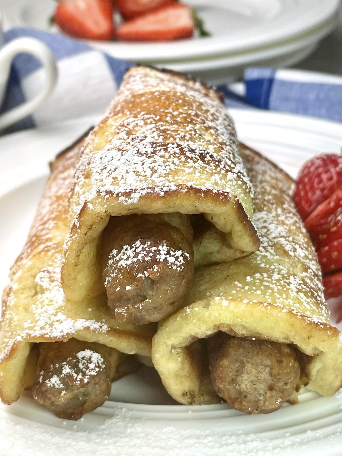 Gluten free pigs in a blanket are a fun breakfast treat. The minute you bite into these fluffy pancakes with slightly crispy edges and discover the spicy breakfast sausage inside, you’ll know it’s going to be a special day. You’re sure to hear giggles from your children when you announce that you’re serving gluten free…